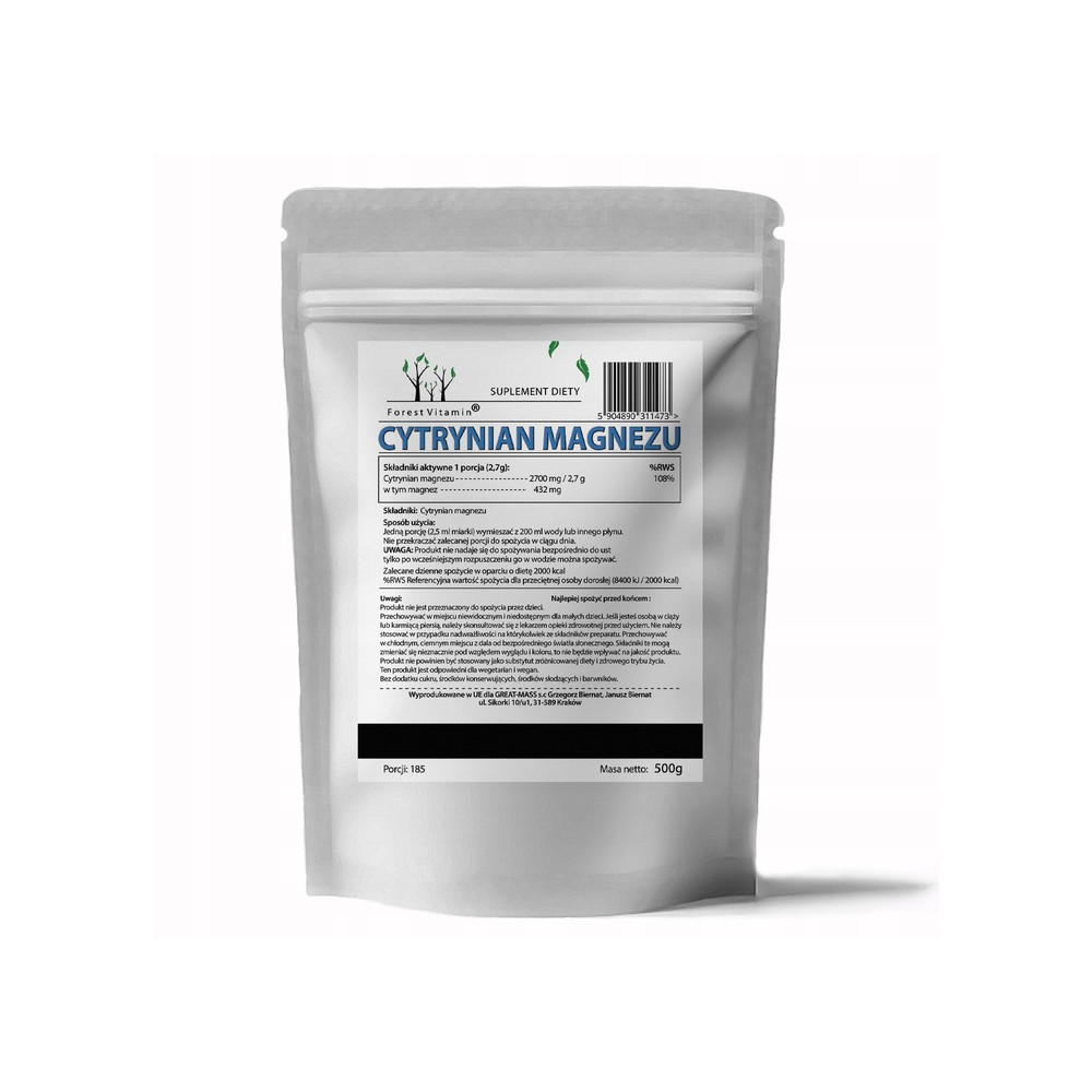 ➡️ Wysoka przyswajalność – Cytrynian magnezu jest jedną z najlepiej przyswajalnych form magnezu.