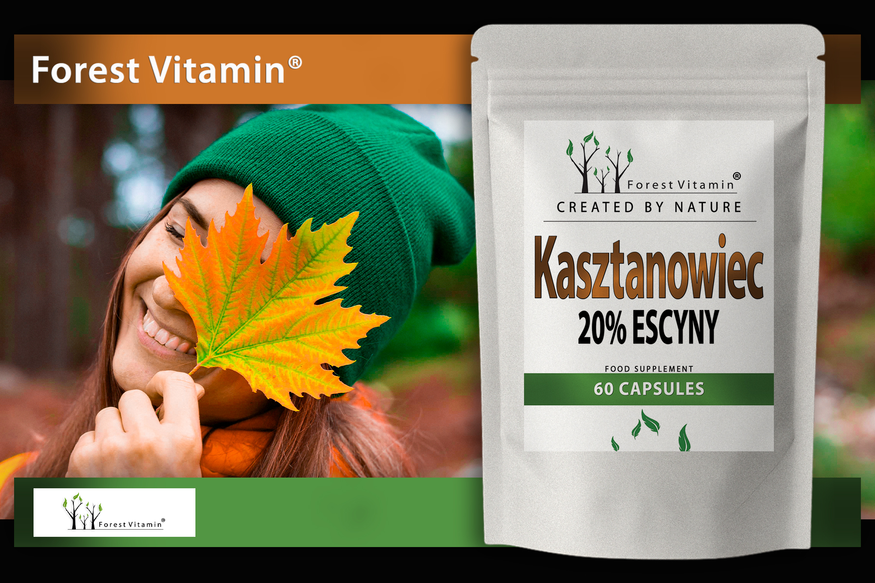 Forest Vitamin® Ekstrakt z Kasztanowca 400 mg to wysokiej jakości suplement diety zawierający standaryzowany ekstrakt z nasion kasztanowca zwyczajnego (Aesculus hippocastanum L.), bogaty w escynę – naturalny związek roślinny o szeroko badanych właściwościach fizjologicznych. Preparat opracowano z myślą o osobach, które chcą wspierać prawidłowe funkcjonowanie układu krążenia, kondycję naczyń krwionośnych i uczucie lekkości nóg.