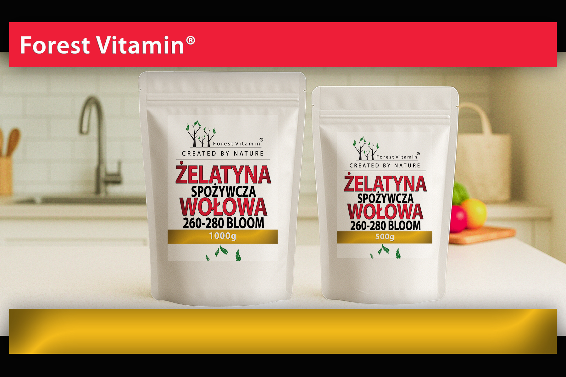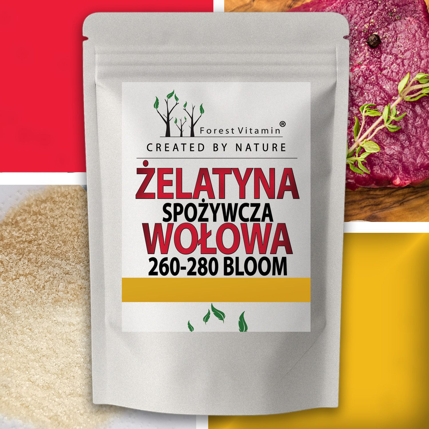 Żelatyna spożywcza wołowa Forest Vitamin® to produkt jednoskładnikowy: