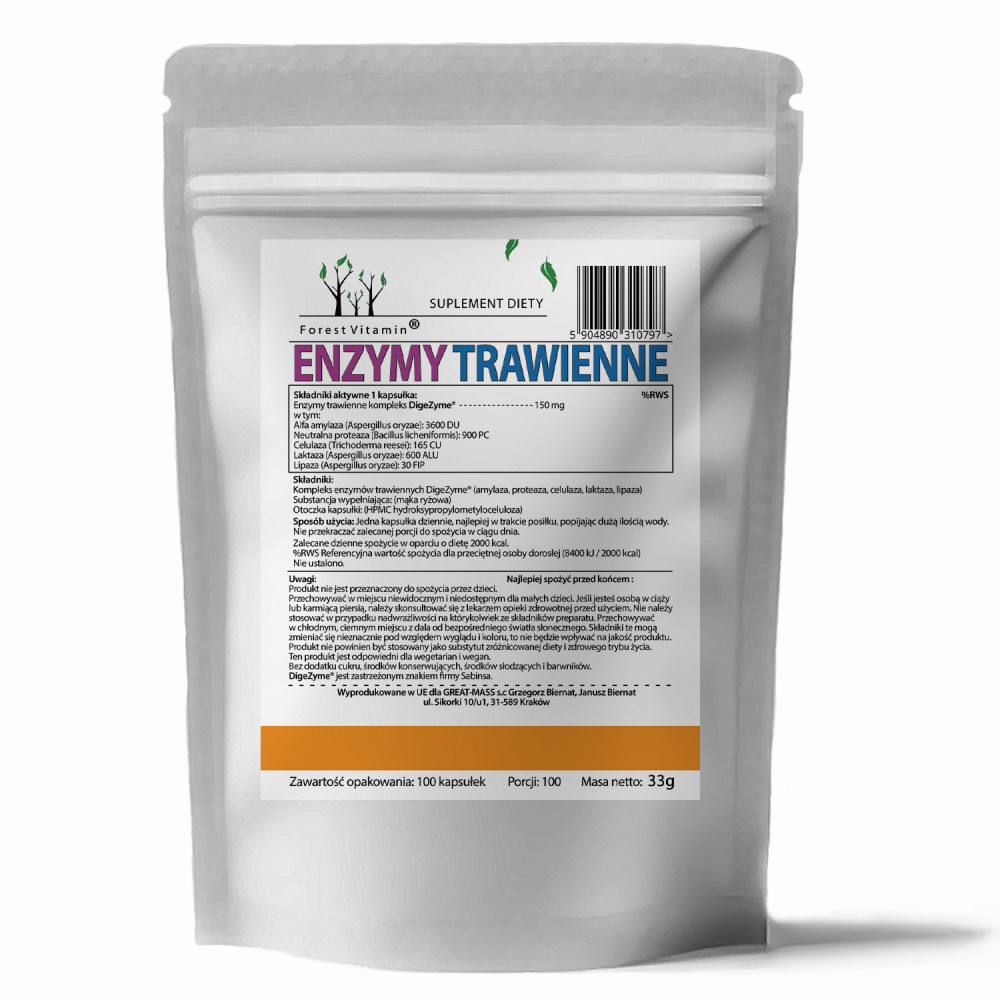 ⭐ Enzymy Trawienne pomagają w trawieniu jedzenia przyspieszając i ułatwiając rozkład złożonych cząsteczek pokarmowych (białek, tłuszczów i węglowodanów) na prostsze formy, które organizm może łatwo wchłonąć i wykorzystać.